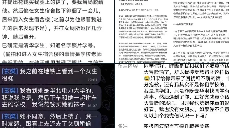 目前,清华大学和华北电力大学尚未就此事件发表官方声明。社会舆论对于学校处理此类事件的方式和态度表现出较高的关注度,公众普遍认为学校应该严肃处理此类侵犯个人隐私和安全的行为,并提供一个安全、尊重的学习环境。