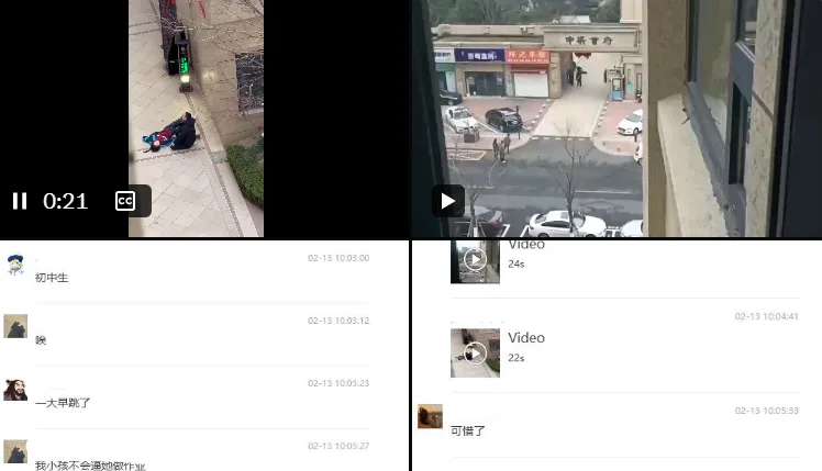 唐人日报2月14日讯:近日,浙江温州市中梁首府小区发生一起悲剧事件,一名女孩从楼上跳下,家属在现场趴在女孩身上痛哭。网传消息称,事发当天早晨,女孩可能因寒假作业未完成而感到压力过大,最终选择轻生。当地居民表示,近年来孩子们面临的学业压力愈加沉重,已成为不少家庭关注的问题。