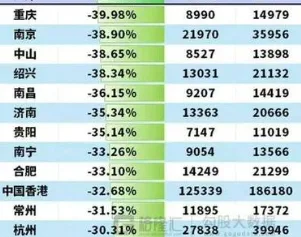 唐人日报9月15日讯:近日,格隆汇发布的一张主要城市房价回撤幅度图表引发广泛关注。数据显示,温州以高达63.14%的跌幅位居全国榜首,成为房价下行最剧烈的城市。而作为一线代表的北京与上海跌幅最小,分别为17.8%和20.02%,位列榜单末端。该数据很可能基于国家统计局每月发布的“70个大中城市商品住宅销售价格指数”,通过对比房价从峰值到谷底的变化,量化各地市场的下行程度。