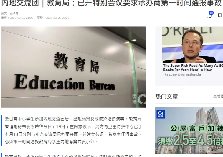 教育局还表示,将与相关学校和卫生部门紧密合作,确保及时采取适当措施,预防类似事件的发生,并提醒学校加强交流团的健康防护工作,确保学生的身心健康。
