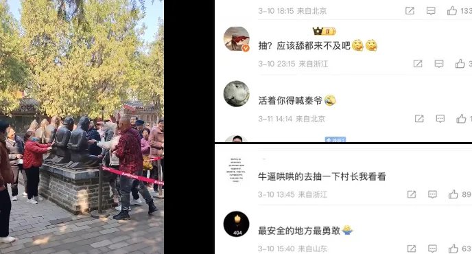 视频显示,该名游客在多人的注视下,对秦桧夫妇的雕像进行了肆意抽打。该事件不仅展示了一些公众对历史人物的情绪表达,也引起了关于尊重文物和公共道德的讨论。网友们对此事表达了复杂的看法,有人质疑如果秦桧真的还活着,这些行为是否还会发生。有评论指出,“若秦桧夫妇还活着,谁敢抽?”这反映了公众对历史人物的双重标准及对权力的态度。