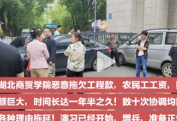 唐人日报6月4日讯:近日,一位名为“团长”的抖音博主发布视频,公开控诉湖北商贸学院拖欠工程款,引发舆论关注。视频中,该博主称自己承包的工程至今未收到任何款项,资金压力巨大,员工生活困难。