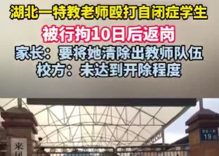 湖北特教老师殴打自闭症学生仅被拘10天返岗!校方:不足以开除