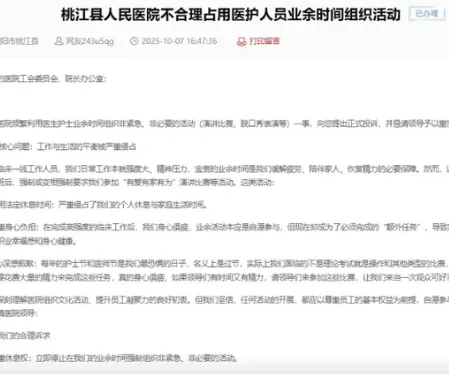 湖南桃江县医院医护发帖怒怼工会活动:“白天救人,晚上被逼演节目”引发舆论热议