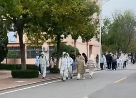 唐人日报10月22日讯:山东滨州职业学院校园内出现数名身着防护服的“大白”,他们手持喷雾设备,对教学楼、宿舍区及食堂等公共区域进行全面消杀。这一幕迅速引起学生和校外公众的热议。