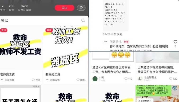 唐人日报3月14日讯:近日,山东潍坊潍城区一名教师在社交平台上反映,当地政府拖欠教师工资、绩效奖金及社保,引发社会广泛关注。该教师表示,其所在学校教师已被拖欠2024年12月至2025年2月的工资,绩效奖金拖欠长达8个月,社保缴纳更是已断缴13个月。
