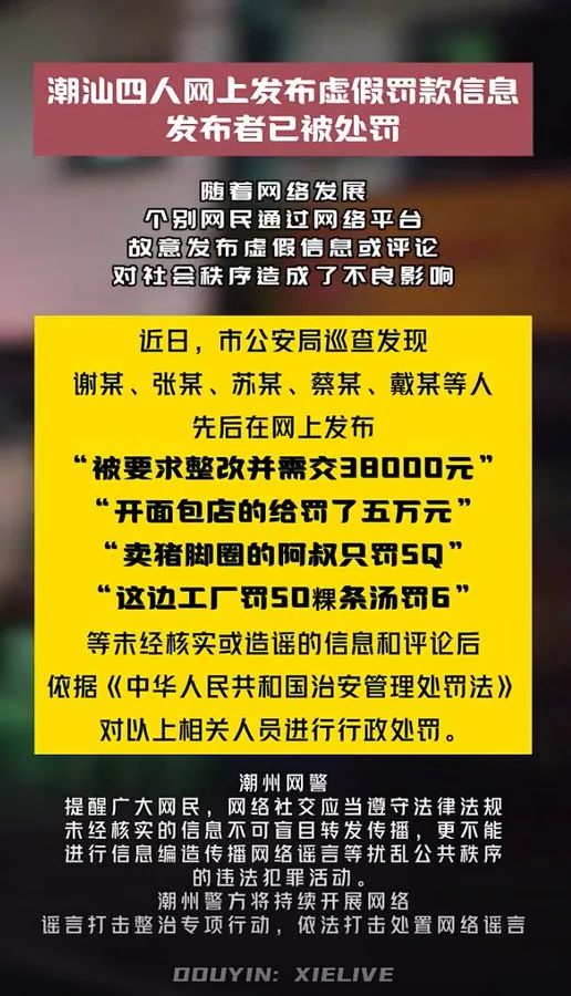 潮州多人散布谣言干扰社会 涉事人员被处罚
