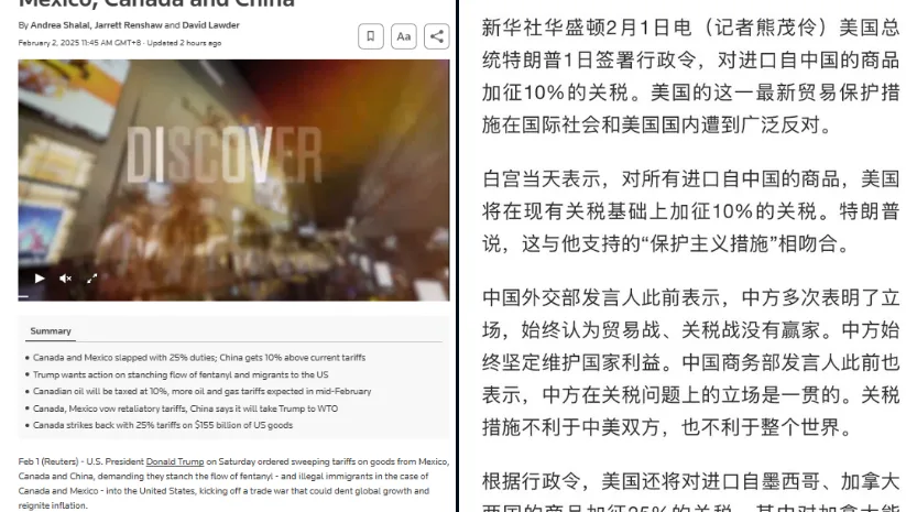 唐人日报2月5日讯:近日,特朗普兑现对墨西哥、加拿大和中国征收高额关税的威胁,预计这些措施将从2月7日起生效。这一行动加剧了与美国主要贸易伙伴之间的紧张关系。美国政府表示,这些关税将持续到因芬太尼毒品和非法移民问题引发的国家紧急状态结束。