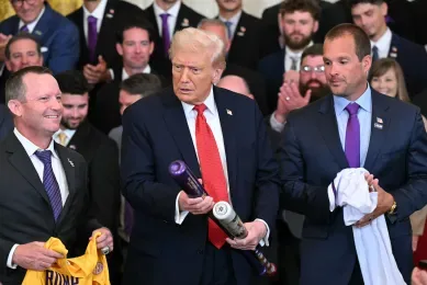 特朗普周一在白宫东厅主持路易斯安那州立大学与路易斯安那理工大学棒球队的庆祝仪式时,突然将庆典变成了一场政治宣言。他在掌声与笑声中开玩笑地说:“他们有一种叫做‘特朗普精神错乱综合症’(Trump Derangement Syndrome),你听说过吗?这就是他们如此疯狂的唯一原因。”