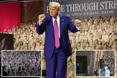 唐人日报5月16日讯:美国总统特朗普周四访问位于卡塔尔的乌代德空军基地,这是中东地区最大的美军驻地。他在士兵们热烈欢呼中致词,承诺将为现役军人争取“大幅度加薪”,并大谈美军战力提升与中东外交成果。