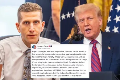 唐人日报7月22日讯:特朗普总统在社交平台Truth Social上发文,对爱达荷大学四人命案嫌犯布莱恩·科伯格(Brian Kohberger)达成免死认罪协议表达强烈不满。他质问:“在宣判之前,法官至少应要求他解释为什么要犯下这些可怕的谋杀案。”