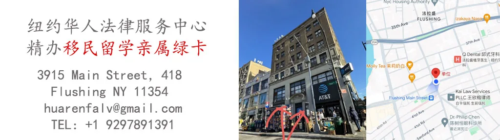 纽约华人法律服务中心精办移民庇护、移民监狱保释、恐惧面谈环节保释。【Phone:929-789-1391 ,地址:3915 Main Street,418,Flushing NY 11354 。周一到周五AM10:00-PM18:00 人不能成功从监狱出来,只收基本律师费用】表示: