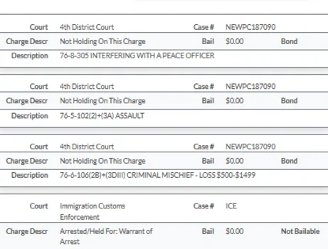 犹他州非法移民涉袭警及破坏财产被捕 现由ICE拘留