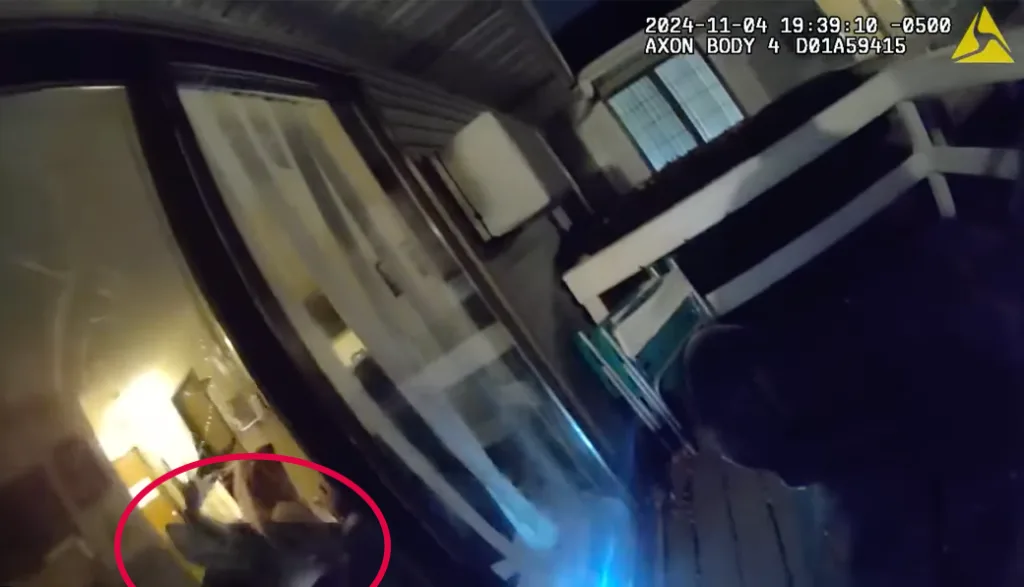 事件发生时,这只雄鹿在公寓内四处乱窜,试图逃脱。随身摄像机画面显示,两名警官卢克·布拉德利(Luke Bradley)和瑞安·马丁(Ryan Martin)赶到现场后,发现鹿在客厅徘徊。