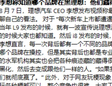 唐人日报8月11日讯:理想汽车CEO李想通过视频发声,直面近期网络上针对理想汽车的密集负面舆论。他坦言,自己和公司“最近被黑得很惨”,但依然希望用更坦诚的方式与公众交流看法。
