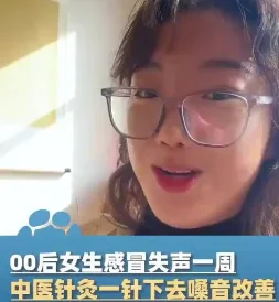 唐人日报11月13日讯:近日,甘肃兰州一名00后女生因感冒导致嗓音丧失长达一周,接受中医针灸治疗后,仅一针便迅速恢复正常嗓音。