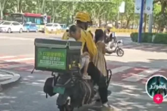 唐人日报6月19日讯:山东一名博主在街头拍摄到一幕令人动容的画面:一位外卖员在酷暑高温中骑车送餐,车后座带着两个年幼的女儿。视频上传后迅速引发广泛关注,博主感慨:“底层人民赚钱太难了。”