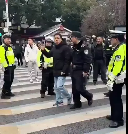 疑因炒股失败男子街头发疯遭警方带离