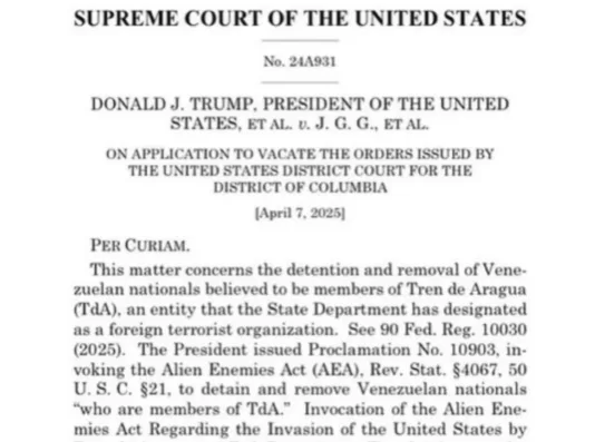 唐人日报4月8日讯:最高法院正式支持特朗普总统援引18世纪《外国敌人法案》,继续将被指控有组织犯罪背景的非法移民遣送至萨尔瓦多“CECOT”超级监狱,引发广泛关注。