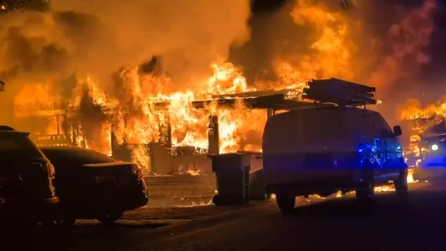 现场图像显示,大火几乎吞噬整栋住宅,至少三辆车辆被烧毁。消防人员连夜奋战,控制火势,确保火焰未波及邻近建筑。