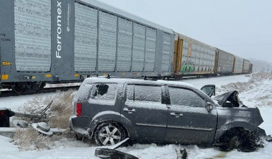 唐人日2月16日讯:近日,博尔德县发生一起交通事故,一辆本田SUV被困在雪中并被一列火车撞上。该事件发生在奥加拉拉路和对角线高速公路交叉口,幸好未造成人员伤亡。