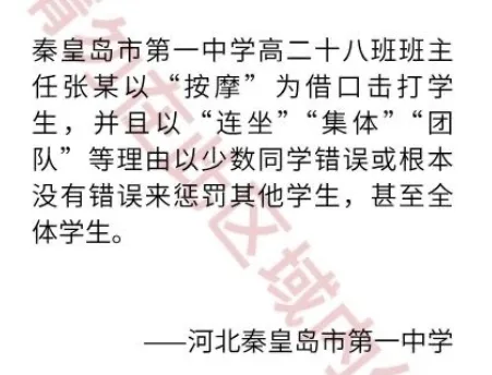 秦皇岛一中班主任被曝体罚学生!以“按摩”为名击打,还搞“连坐”惩罚全班