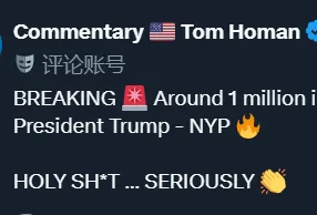 “突发新闻:特朗普总统任内,约有100万非法移民被自行驱逐出境,”霍曼转发纽约邮报相关报道并附言,“我的天哪……说真的。”