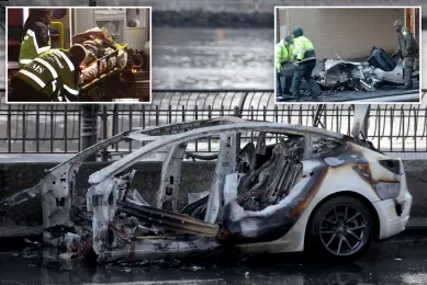 纽约警方(NYPD)表示,事故发生在凌晨2:30刚过,特斯拉撞击护栏后失控翻滚,最终四轮朝天,并引发剧烈燃烧。车内两人均被抛出车外,女司机当场死亡,而26岁男性乘客则重伤送医,目前情况稳定。