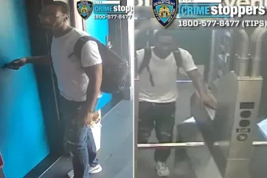 纽约警局随后公布了监控视频。画面显示,该男子曾在酒店门口徘徊敲门,并在逃离过程中跳过地铁闸机,行迹明显。他被描述为肤色黝黑,佩戴眼镜,身穿白色T恤、蓝色牛仔裤和白色运动鞋,背着黑色背包。警方呼吁知情者提供线索,协助尽快将其缉捕归案。