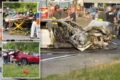 警方表示,事故发生在靠近Cross Bay Boulevard的东向车道。宝马冲过隔离带后先后撞上一辆2016年本田CRV与一辆红色2022年现代轿车,引发火灾。24岁的宝马司机及一名女性乘客伤势严重,被紧急送往布鲁克代尔医院抢救;另有一名34岁现代车女司机也被送医,目前情况稳定。
