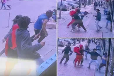 唐人日报5月9日讯:一段令人震惊的视频曝光了纽约皇后区里奇伍德街头的一起光天化日下的暴力事件。一名19岁青少年在麦当劳门前遭数名同龄人围殴,并被刺伤头部。