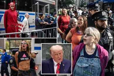 这一天,恰逢特朗普总统在联合国大会上发表演讲。会场外的抗议活动与会场内的政治交锋形成强烈反差。纽约街头的标语、喇叭和冲突,成为对外展示的一幕混乱图景。