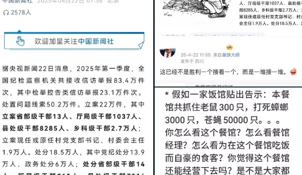多位网友和博主针对数据展开讨论。有博主直言:“守着垃圾堆打苍蝇,越打苍蝇越多。” 另一位博主则以比喻嘲讽:“假如一家餐馆贴出告示,说它抓住老鼠300只、打死蟑螂3000只、苍蝇5万只,你还会愿意走进这家饭店用餐吗?”