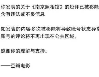 网友豆瓣留言“铭记照相馆”,竟被判定“不良信息”删除 引舆论哗然