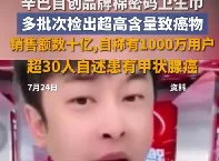 唐人日报7月25日讯:近日,快手头部主播辛巴自创品牌“棉密码”卫生巾陷入质量风波。多批次产品被曝检出高含量硫脲,这一可能致癌的化学物质已在动物与细胞实验中证实具有甲状腺毒性、肝毒性、免疫毒性与生殖毒性等健康风险。