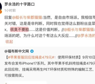 罗永浩骂苹果挂绳“傻X”登热搜,网友吐槽:苹果果然不坑穷人