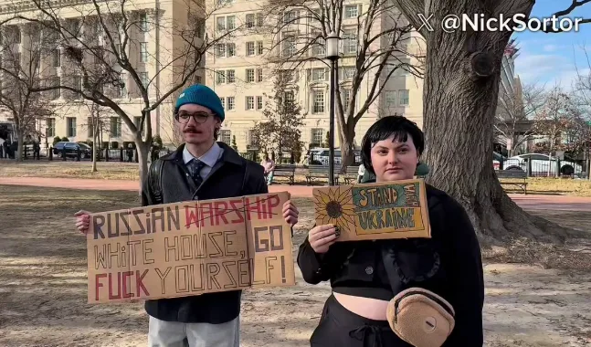 美乌局势升级:白宫外爆发亲乌克兰抗议活动