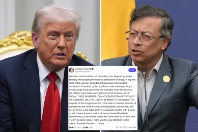 特朗普对此反击称,那艘被击中的船只“运载着来自委内瑞拉的毒品恐怖分子”,并强调这是“合法的反毒行动”。他说:“如果佩特罗不关闭那些毒品田,美国会替他关闭——而且不会做得太温和。”这番警告被广泛解读为特朗普可能考虑对哥伦比亚展开更强硬的军事或经济打击。多名国会外交委员会成员对此表示担忧,认为这可能破坏地区稳定,甚至激化加勒比地区的安全危机。
