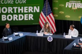 唐人日报6月23日讯:近日美国国土安全部长克里斯蒂·诺姆(Kristi Noem)在底特律出席“建设美国未来”圆桌会议时,警告称美加边境正面临日益严峻的安全威胁。她呼吁联邦政府将对南部边境的成功策略复制到北部边境,以遏制犯罪和毒品流入。