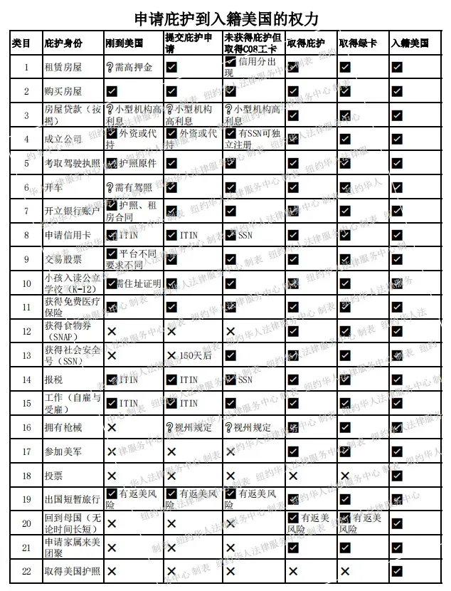 无论您是计划来到美国寻求庇护,还是已经开始了庇护申请的过程,了解自己在庇护期间的权利和限制非常重要。