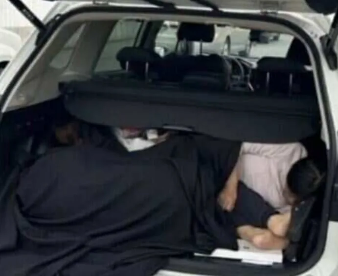 唐人日报10月17日讯:近日墨西哥蒂华纳边境口岸发生离奇一幕:一名女司机在排队等候入境时,突然听到汽车后部传来异样的声响。当她下车检查时,震惊地发现——三名女子正蜷缩在自己的后备箱里,企图偷渡进入美国。