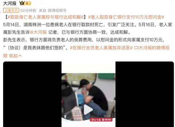 事件曝光后引发舆论强烈谴责,质疑银行在处理特殊客户业务时缺乏人性化与灵活性。面对舆情压力,涉事银行与死者家属经过协商,已达成和解协议。根据协议,银行将承担全部丧葬费用,并以慰问金形式向家属一次性支付人民币10万元。