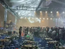 据目击者描述,当时天空骤变,风雨交加,舞台上方的大棚在猛烈冲击下剧烈晃动,几秒之内轰然坍塌。观众惊叫四散,部分人来不及逃离被压在棚架和设备之下。演出现场一片混乱,尖叫、呼救与金属坠落的声音交织在一起,场面惨烈。