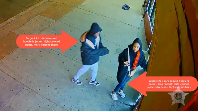 警方公布了两名在案发现场附近出现的嫌疑人信息:其中一人身穿深色New Balance连帽衫、深色夹克、浅色裤子及彩色运动鞋;另一人为长发染红女性,身穿深色连帽衫、深色夹克和蓝色牛仔裤,手持浅色手提包,脚穿浅色运动鞋。