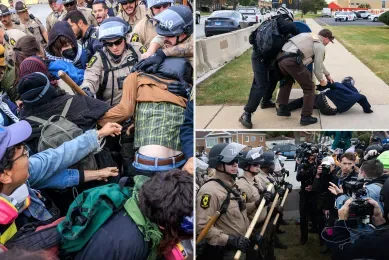 据当地媒体 WLS 报道,示威者高喊“全世界都在看”,试图突破封锁线,警方则身着防暴装备、手持警棍进行驱散。视频显示,多名抗议者被警察拖出人群、压制在地后戴上手铐带走。库克县治安官办公室称,被捕人员被控“抵抗逮捕与妨碍执法”。