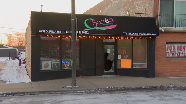凌晨3点54分,位于南Pulaski路8451号的Qsazon墨西哥餐厅首次遭袭。一名窃贼从前门闯入餐厅,盗走不明物品后,又闯入餐厅内两辆汽车并损坏其中一辆。不到半小时后,凌晨4点25分,监控视频显示,一名男子闯入位于8352 S. Pulaski路的Angie’s餐厅和披萨店,跳过柜台直接前往收银台盗窃。