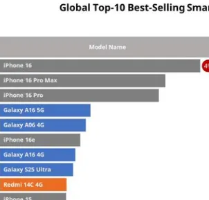 相比之下,中国手机厂商的存在感显得黯淡。榜单中唯一入围的中国机型是小米的EDMI 14C 4G。这款入门级机型在拉丁美洲、中东和非洲(MEA)等新兴市场表现突出,凭借低价与耐用的特点,在注重实用性和价格敏感度高的消费者群体中赢得了稳定销量。分析指出,小米之所以能突出重围,得益于其深耕新兴市场的战略和供应链的灵活性。