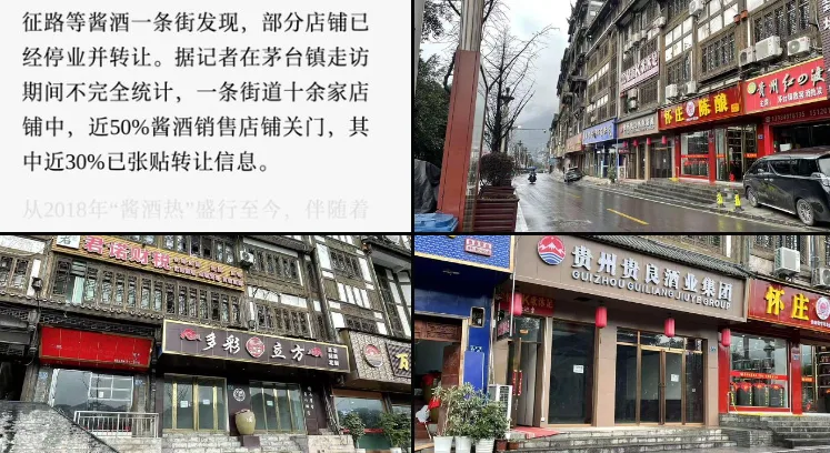 从2018年开始,酱酒行业经历了高速增长阶段,尤其是茅台酒作为行业风向标,长期处于市场的主导地位。然而,随着产能过剩和市场需求的饱和,酱酒行业的热潮逐渐消退,尤其是茅台镇的酱酒销售显现出疲态,许多商家未能抵御市场的下滑压力,开始选择关停或转让店铺。