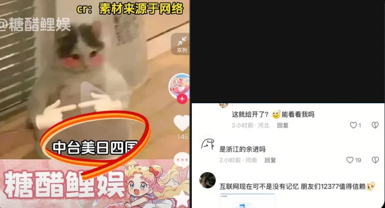 唐人日报2月2日讯:近日,一营销号“糖醋鲫娱”因其发布的视频字幕中提到“中、台、美、日四国”,遭到大量网民攻击。部分评论区出现发布者的名字,疑似被人“开盒”追踪。视频的这一字幕引发了广泛的争议,部分网民认为这一表述存在政治敏感问题。事件发生后,该视频被迅速举报并下架。