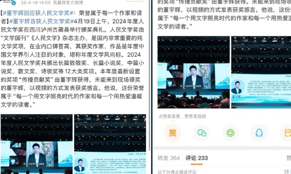 董宇辉获“人民文学奖”传播贡献奖,官媒评论“我笑而不语”引热议